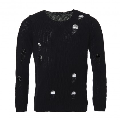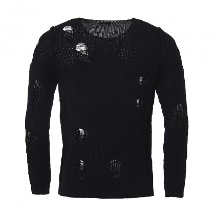 Мъжка плетена блуза Imperial в черно. Моделът е подходящ за свободното време. Може да се комбинира с дънки или панталон. Плетката на блузата е едра, а добавените ефекти на прокъсване, правят модела незаменим за една небрежна визия. Блуза Imperial е изработена от мека и приятна материя.