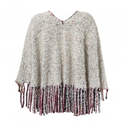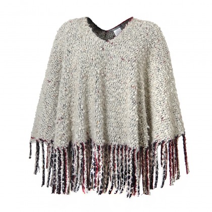 Моделът е с V-образно деколте, а в долната си част завършва с ресни в бяло и червено.