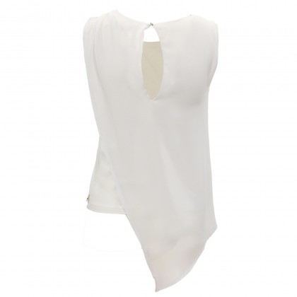 Топ MET е стилен избор за ежедневието и специални поводи. Моделът е без ръкави с асиметричен втори пласт от ефирна материя. Върху раменете е са разположени метални елементи, а гърбът е дискретно изрязан. Комбинира се отлично с елегантни дрехи и обувки.