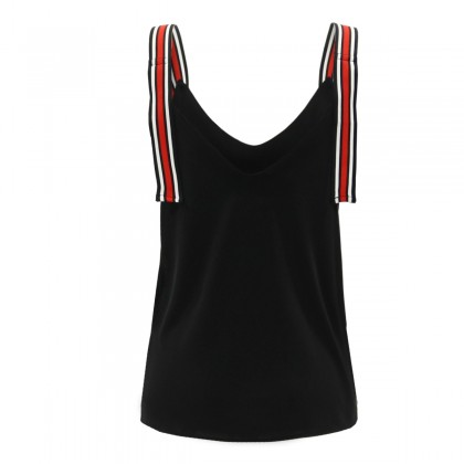 Дамски потник Imperial е стилно и удобно решение за ежедневието и свободното време. Моделът е произведен от мека материя в класически черен цвят. Дизайнът включва V-образно деколте и гръб, като акцентът е поставен върху цветните презрамки. Комбинира се отлично със спортно-елегантни и елегантни дрехи и обувки.