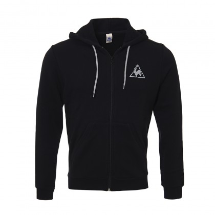 Класически модел в черно, съчетаващ комфорта със стилната визия. Изработен е от мека памучна материя, а качулката и големите странични джобове правят този сиутчър идеално допълнение за всеки спортен гардероб