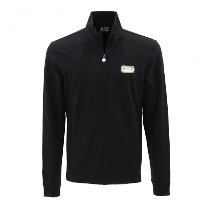 Мъжко спортно горнище EA7 в черно. Моделът е с подчертано спортна визия и е подходящ избор при тренировка или в свободното време. Горнището е изработено от памучна тъкан в практичен черен цвят. Закопчаването на дрехата и джобовете е със скрити ципове. Разполага с еластични маншети за повече комфорт. Комбинира се отлично със спортни дрехи и обувки.