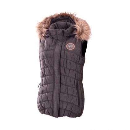 Дамска грейка NorthFinder в черно. Моделът е удобен и много топъл. Разполага с мобилна качулка, обточена с дълъг косъм. Закопчава се с цип, допълнително покрит, и има висока яка.Дамският елек е изработен от висококачествена и много топла материя.